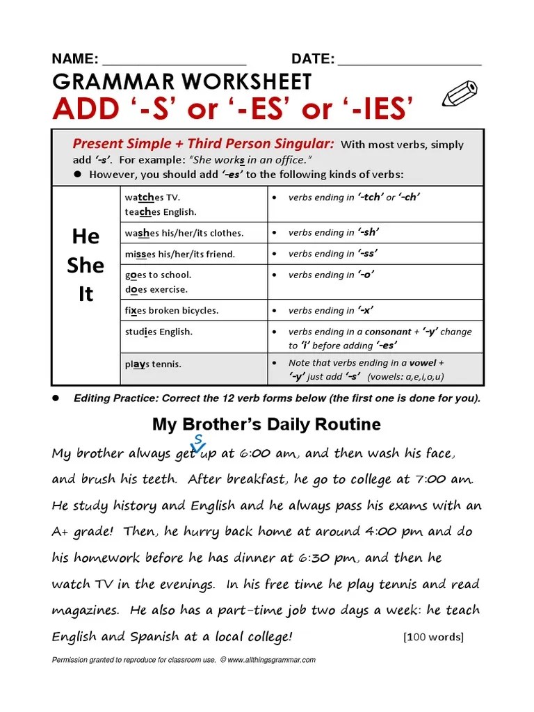 They have / has a shower. At the top of the text, . Third person singular verb agreement worksheet. They cook / cooks dinner. Little sarah kisses her puppy a hundred times a day. Choose the correct form of the verbs: There are 16 activity pages . The first asks children to connect the nouns with their correct pronouns. I always ______ the door at night. Exercise 3 about the spelling of verb forms in the third person of the. Third person multiple choice exercise · 1. Gina is a language professor. They're then given a piece of text with some verbs missing.